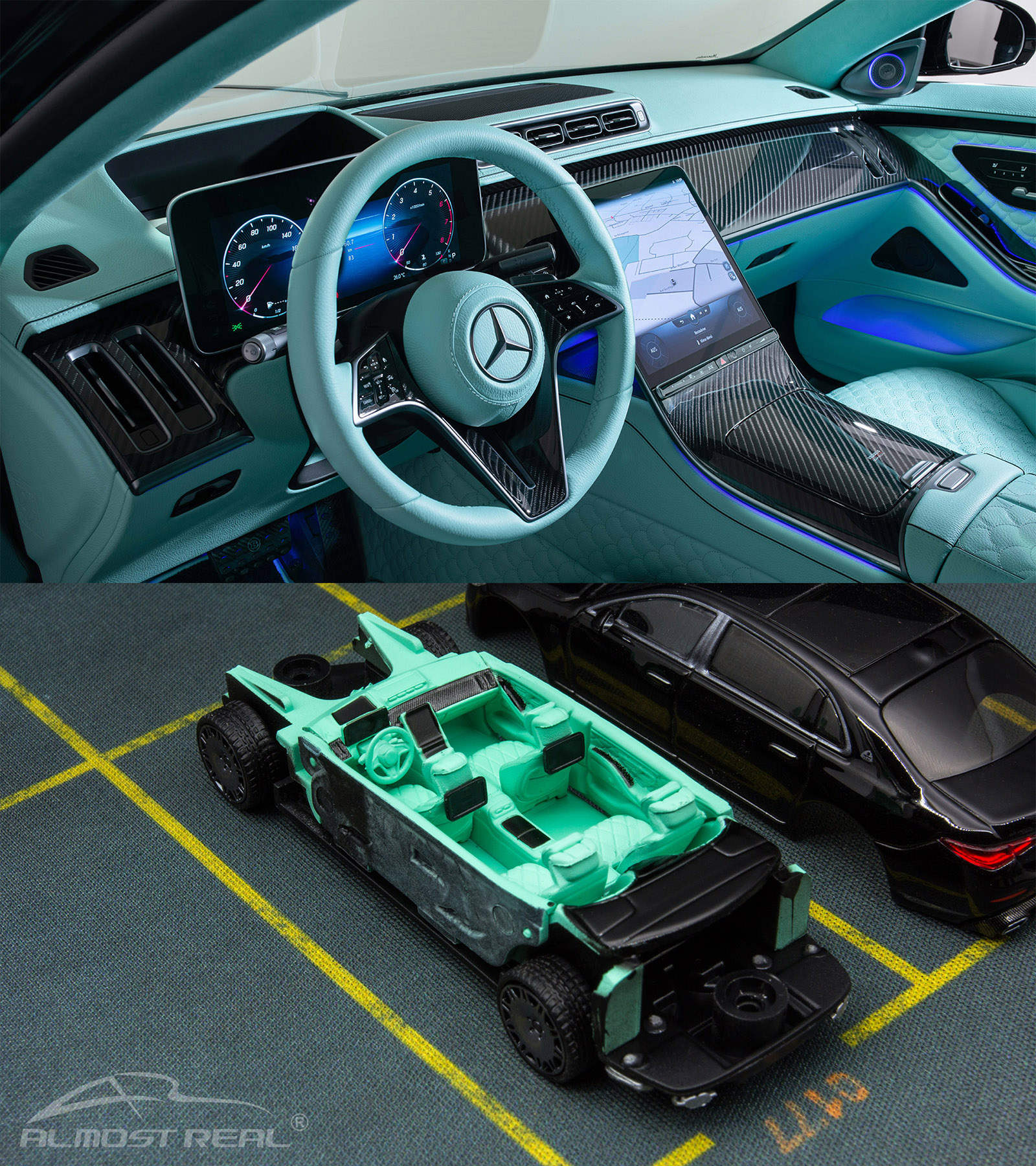 内饰方面,尽管受限于64比例,所能表达的细节非常有限,我们还是对应实车表达了尽量多的颜色、质感和细节。