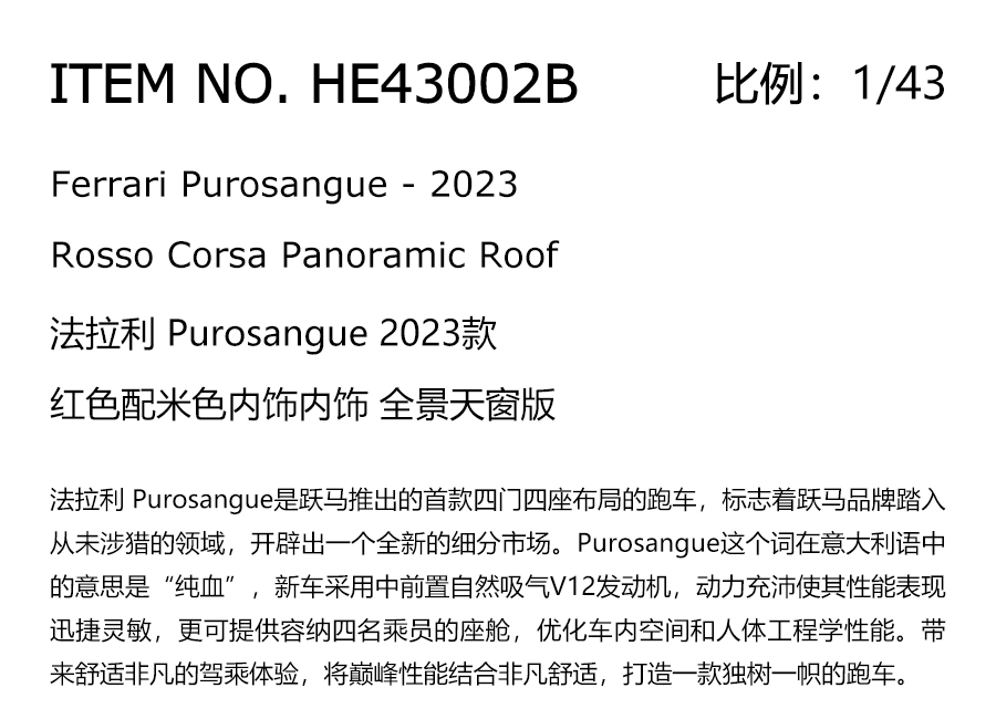 / 法拉利 Purosangue 红色全景天窗 1/43
