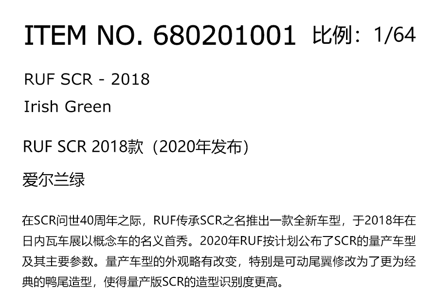 / RUF SCR 2018款 爱尔兰绿 1/64