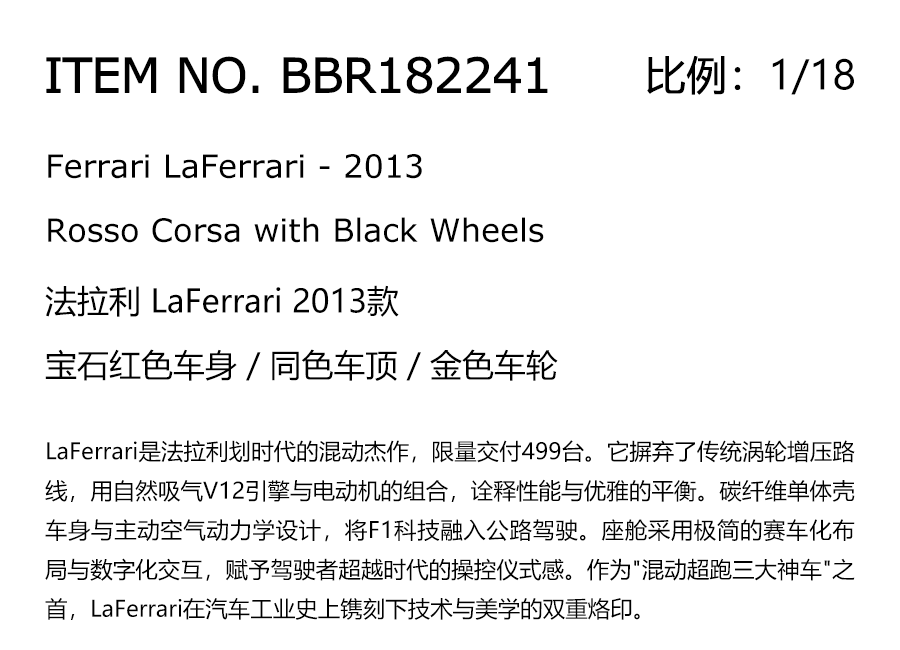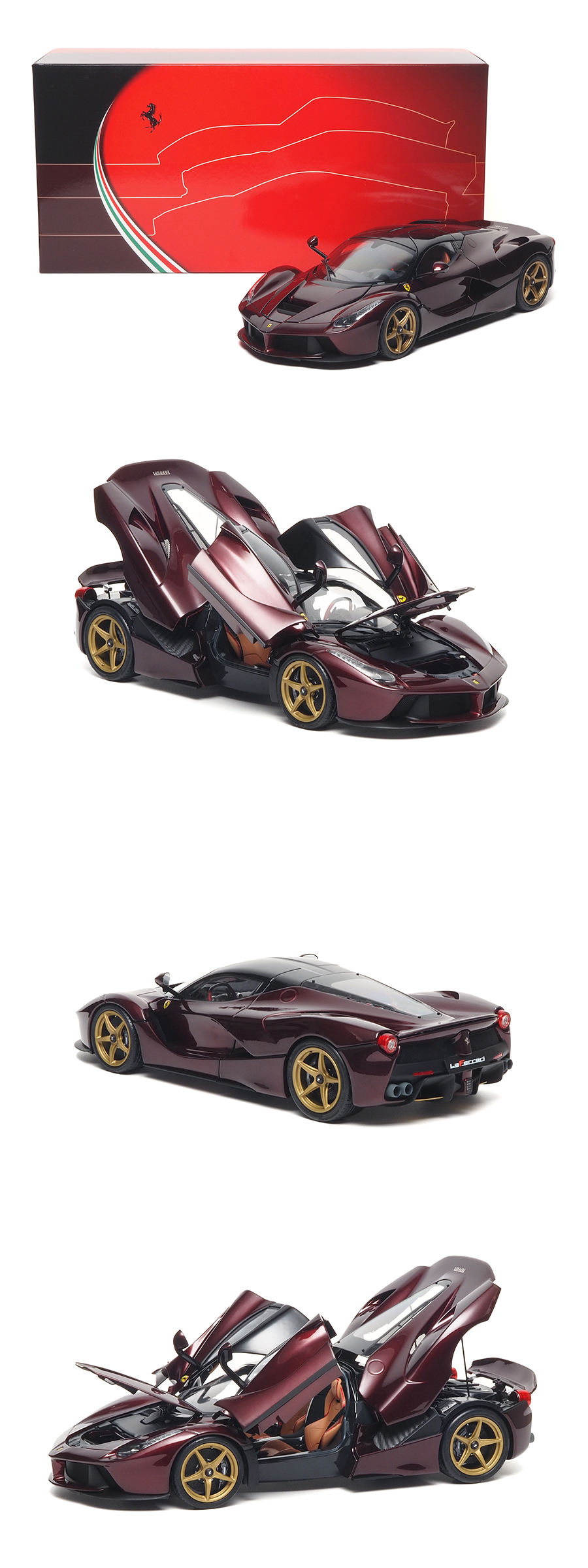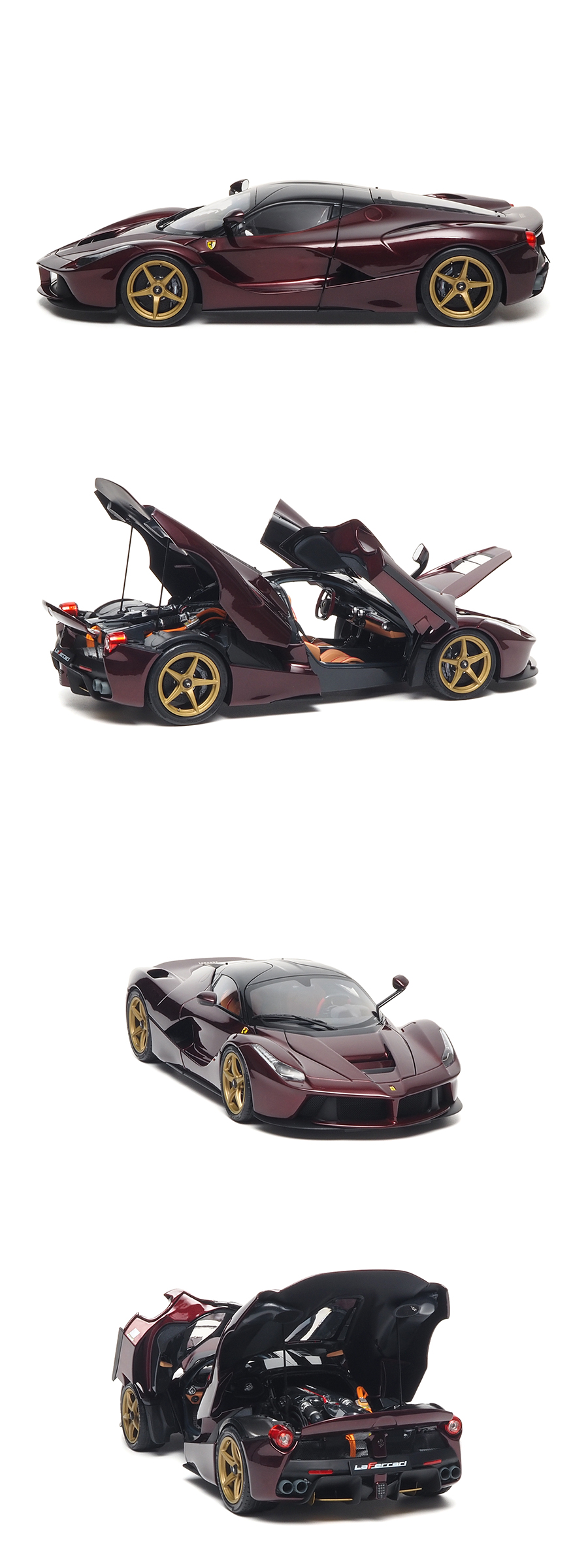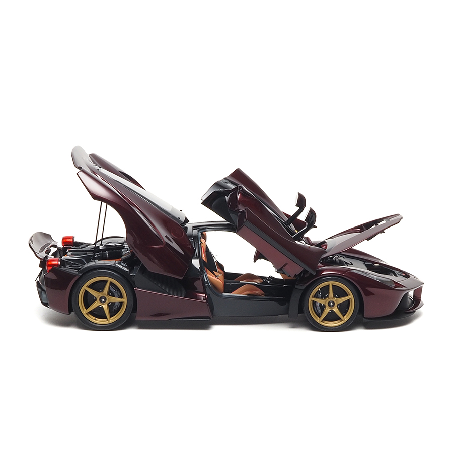 合金全开,尾翼可动,高仿蝶翼门铰链,法拉利宝石红 / 同色车顶 / 金色车轮