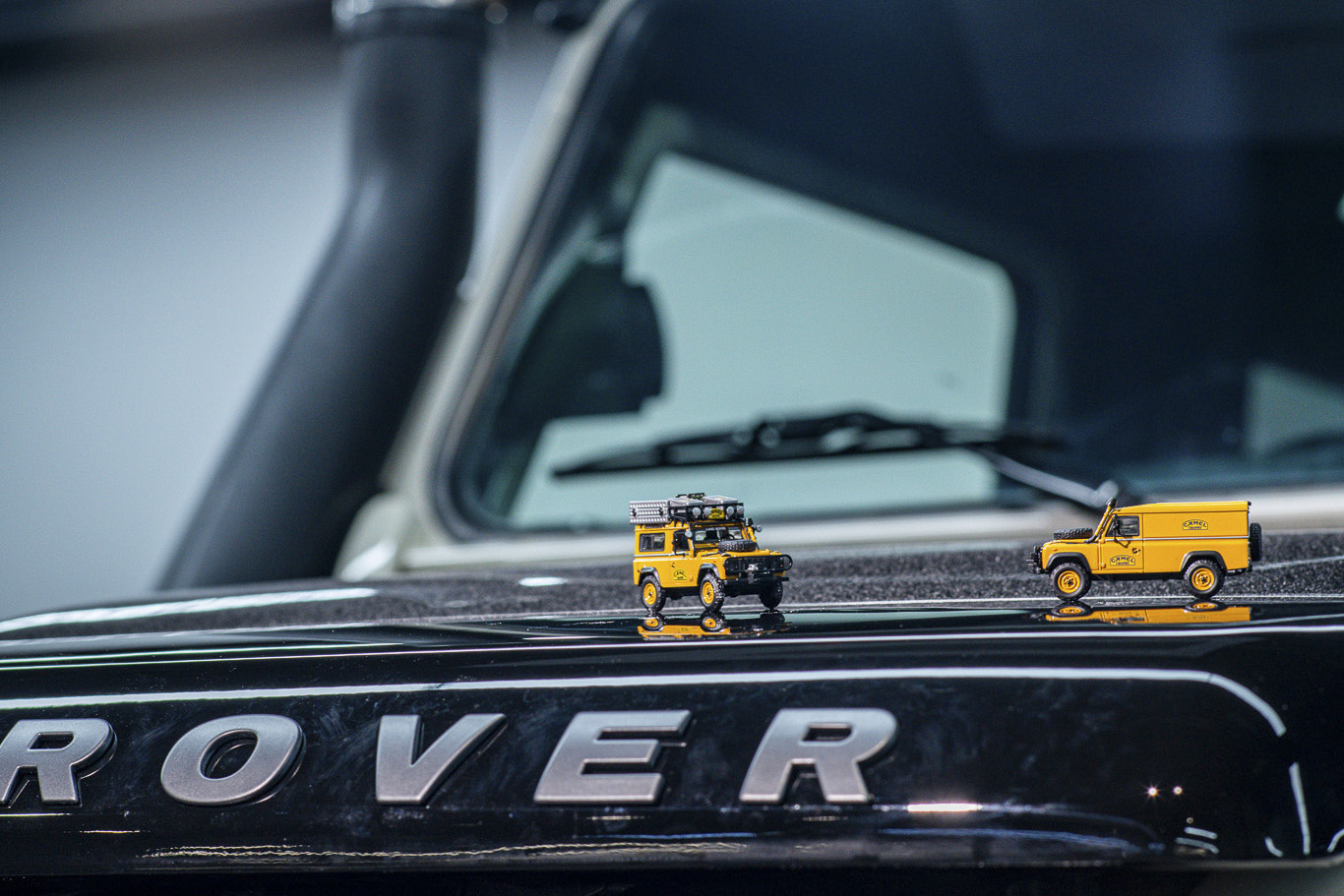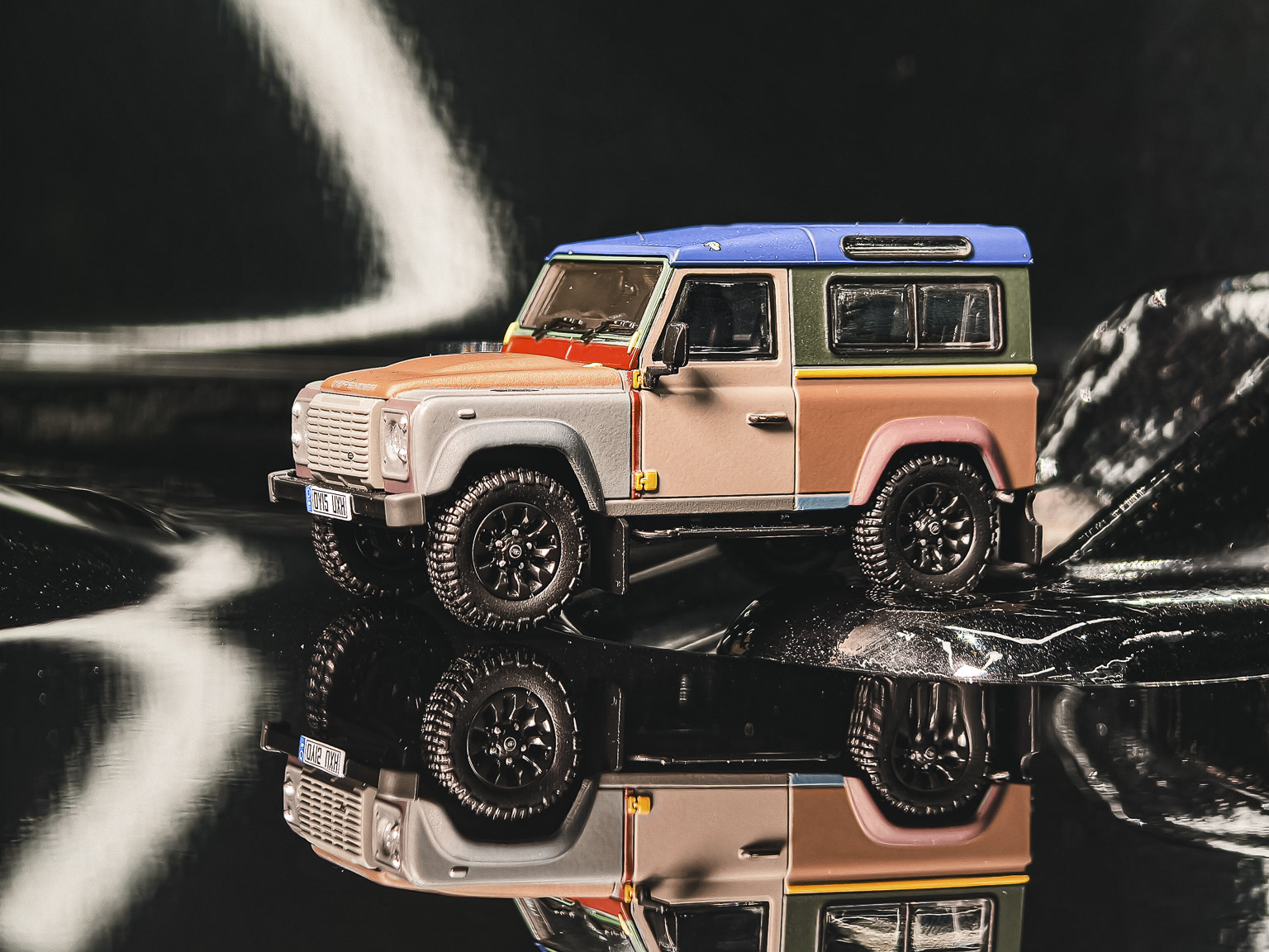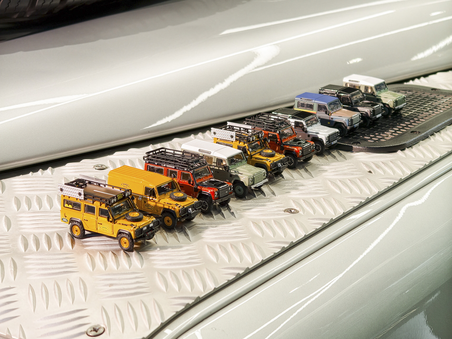 经典卫士全员集结 现在我们将AR Box今年所有的经典卫士新品一字排开,以此作为对这传奇车系的最终致敬。 地点选在了卫士引擎盖的防滑板上。 这块粗粝的金属板,曾被无数次踩在脚下,用来挂载备胎,或是作为观察地形的立足点。 从色彩斑斓的Paul Smith致敬版,到满身泥泞的骆驼杯赛车与保障车,再到经典卫士最后定格的传承版。 这不仅仅是一张合影。 这是一条关于生存与进化的时间轴。 它们有的属于城市画廊,有的属于热带雨林,有的属于乡间农场。 但剥开漆面,它们共享着同一副车架,同一个代号。 当1/64的它们静静停在1:1的钢铁之躯上。 这是AR Box为你呈上的,一整部关于卫士的微缩编年史。