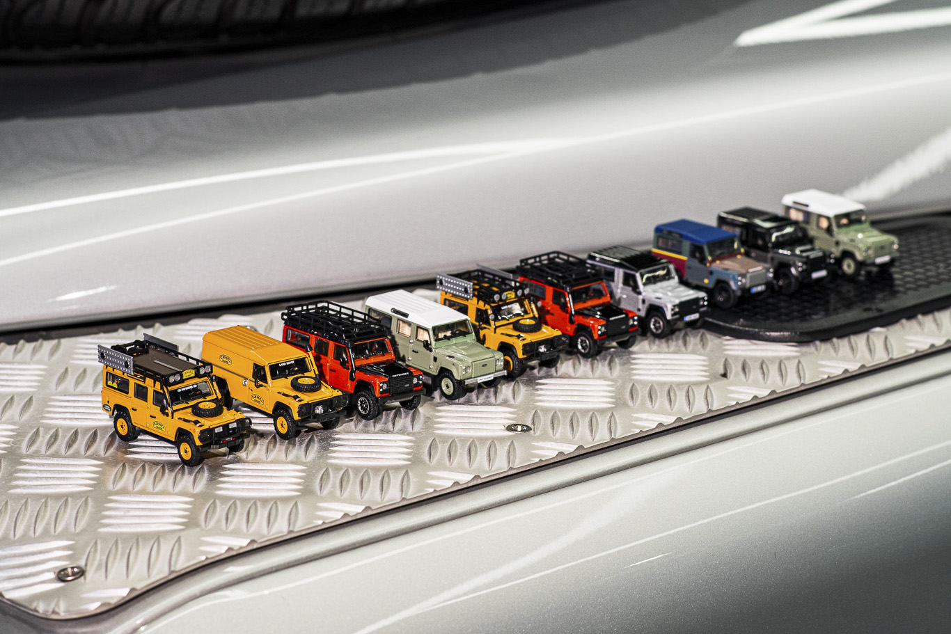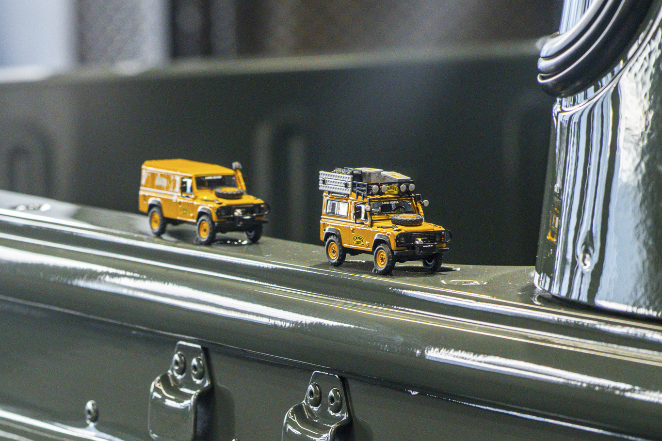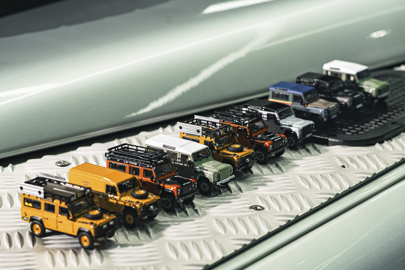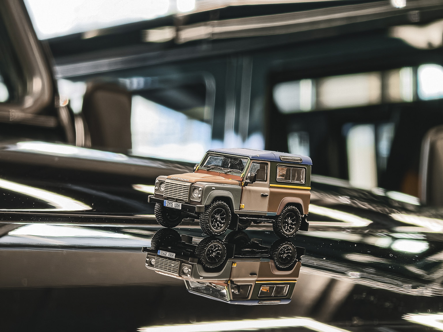经典卫士全员集结 现在我们将AR Box今年所有的经典卫士新品一字排开,以此作为对这传奇车系的最终致敬。 地点选在了卫士引擎盖的防滑板上。 这块粗粝的金属板,曾被无数次踩在脚下,用来挂载备胎,或是作为观察地形的立足点。 从色彩斑斓的Paul Smith致敬版,到满身泥泞的骆驼杯赛车与保障车,再到经典卫士最后定格的传承版。 这不仅仅是一张合影。 这是一条关于生存与进化的时间轴。 它们有的属于城市画廊,有的属于热带雨林,有的属于乡间农场。 但剥开漆面,它们共享着同一副车架,同一个代号。 当1/64的它们静静停在1:1的钢铁之躯上。 这是AR Box为你呈上的,一整部关于卫士的微缩编年史。