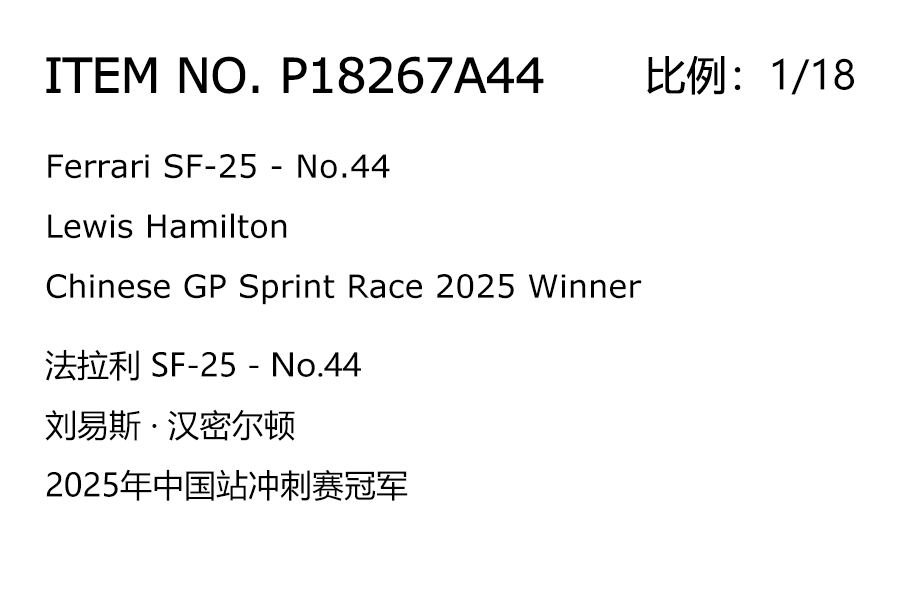 / 法拉利 SF-25 汉密尔顿 2025年中国站冲刺赛冠军